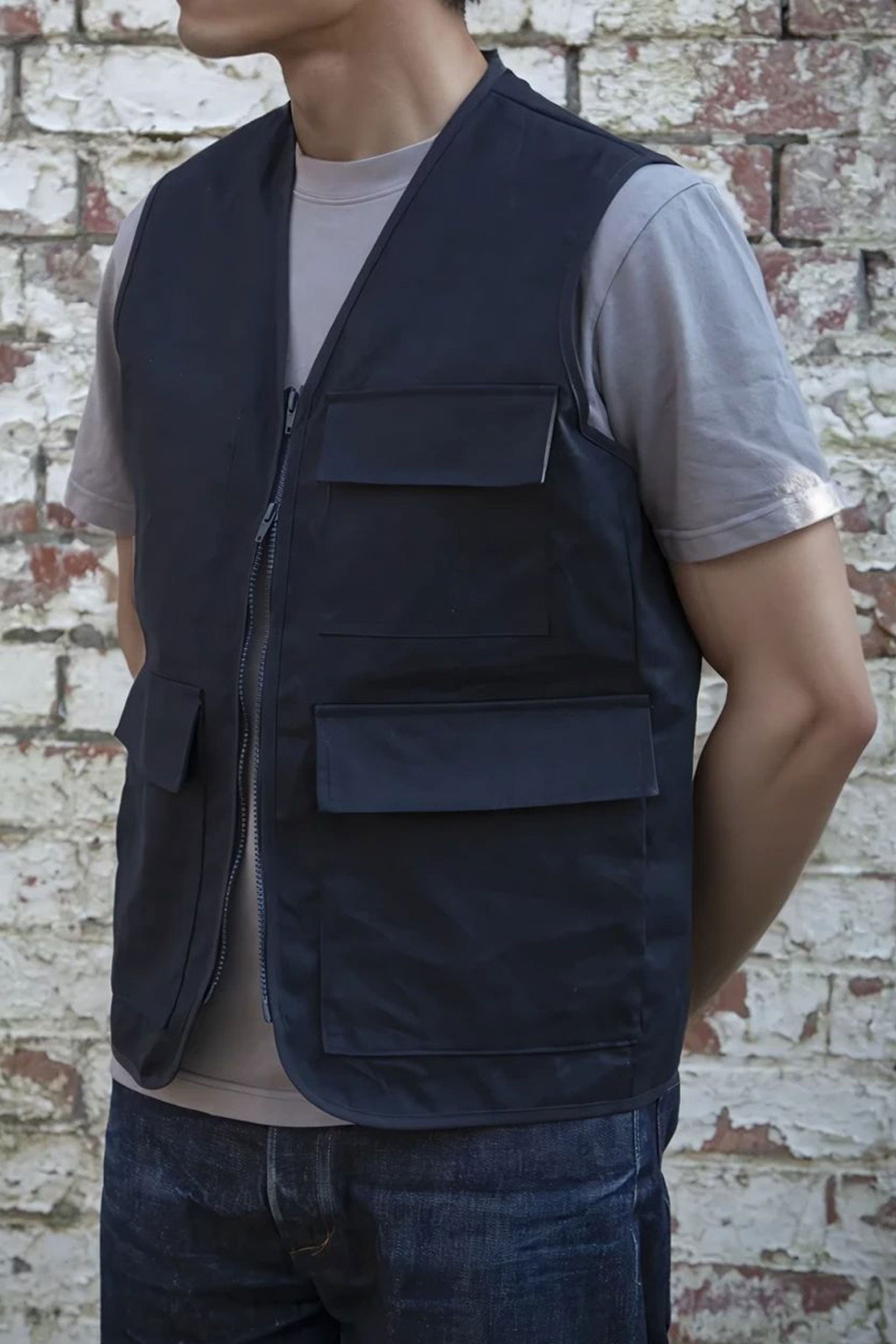 Two lower pockets with side and/or top entry with flap; essentially two pockets in one, chest pocket with flap and a handy inner chest pocket with outer profile stitch.