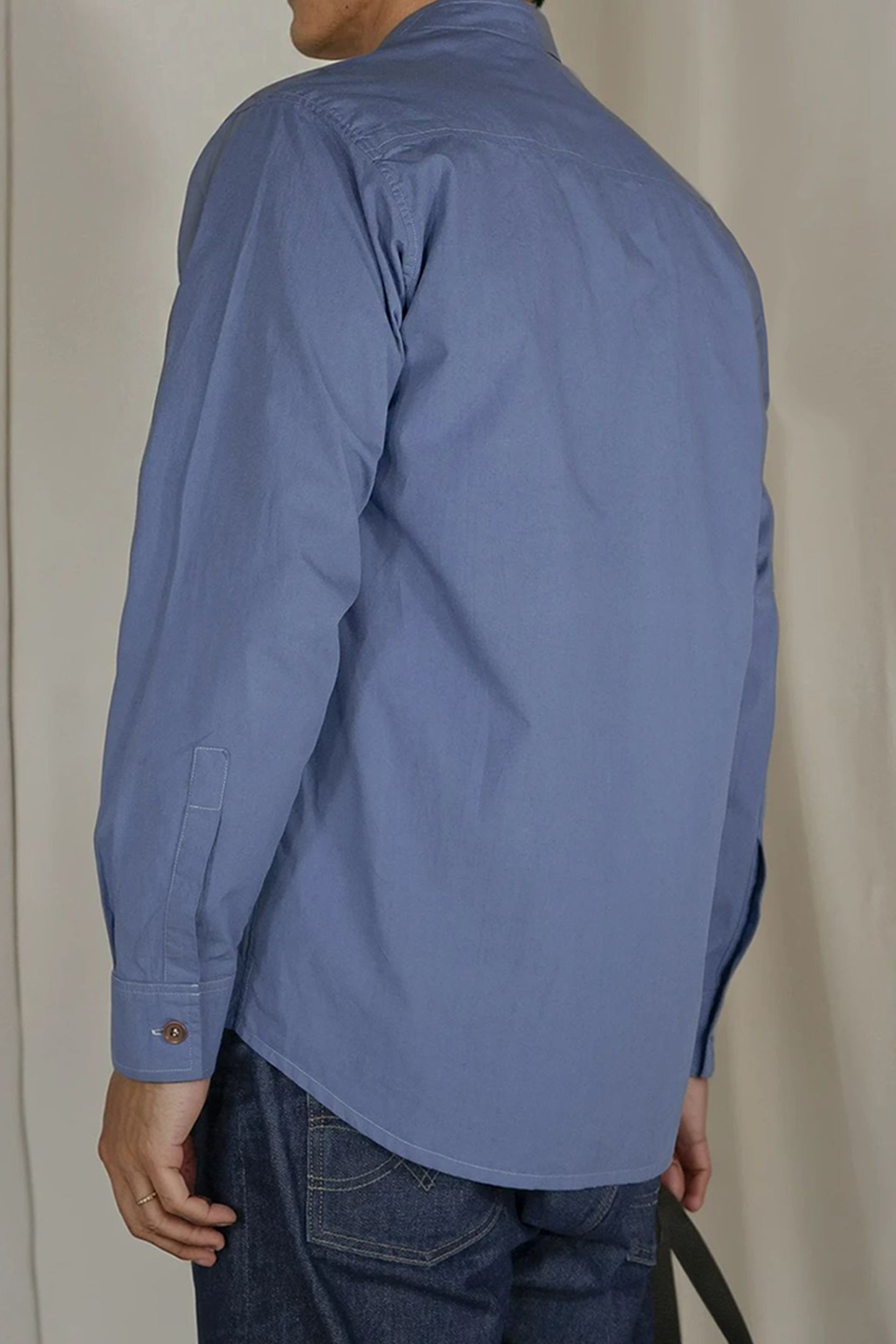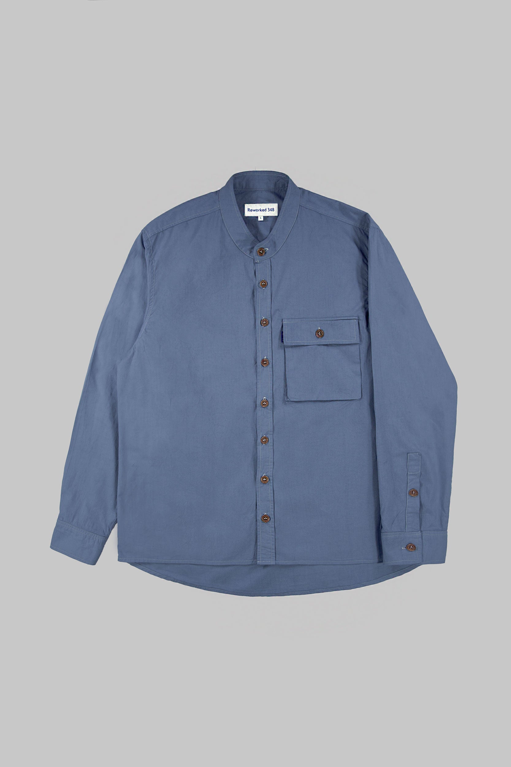A contemporary take on the original grandad shirt, with a squared front merging into a classic shirt tail, ideal for layering and / or wearing with a vest. Using 100% premium deadstock cotton poplin cloth, made not so far from our design studio here in the UK. The quality and make are first class. Constructed by hand using traditional french seams (no automated machinery), with contrast stitching throughout, a single functional bellows chest pocket and quality contrasting buttons.